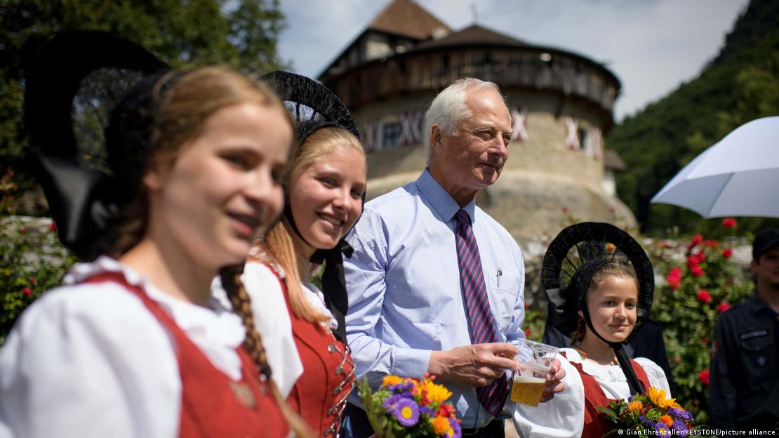 Ο πρίγκιπας Χανς Άνταμ του Λίχτενσταϊν υποδέχεται παιδιά με τοπικές ενδυμασίες