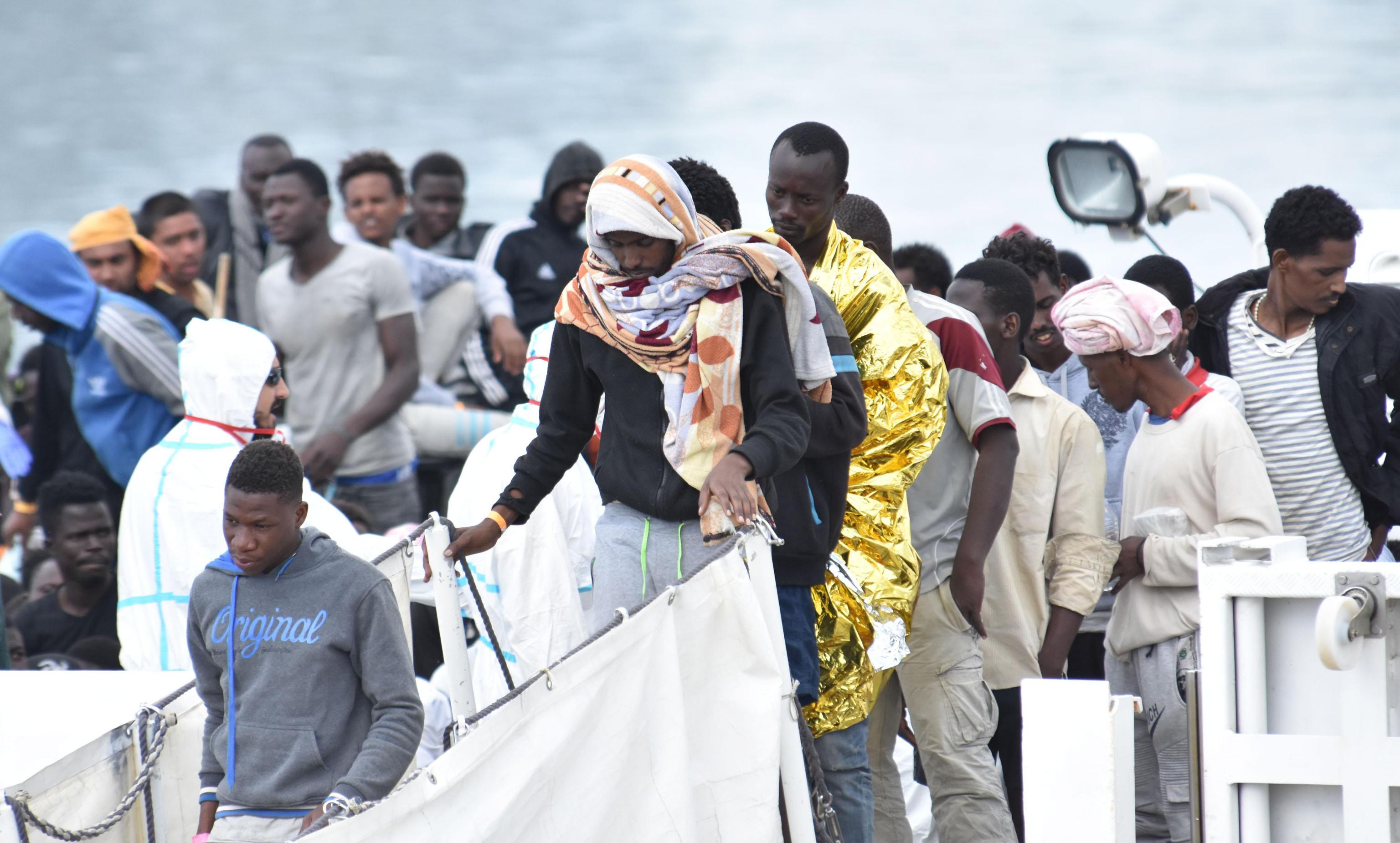 Πρόσφυγες αποβιβάζονται από το πλοίο της ιταλικής ακτοφυλακής Dattilo στο λιμάνι της Βαλένθια