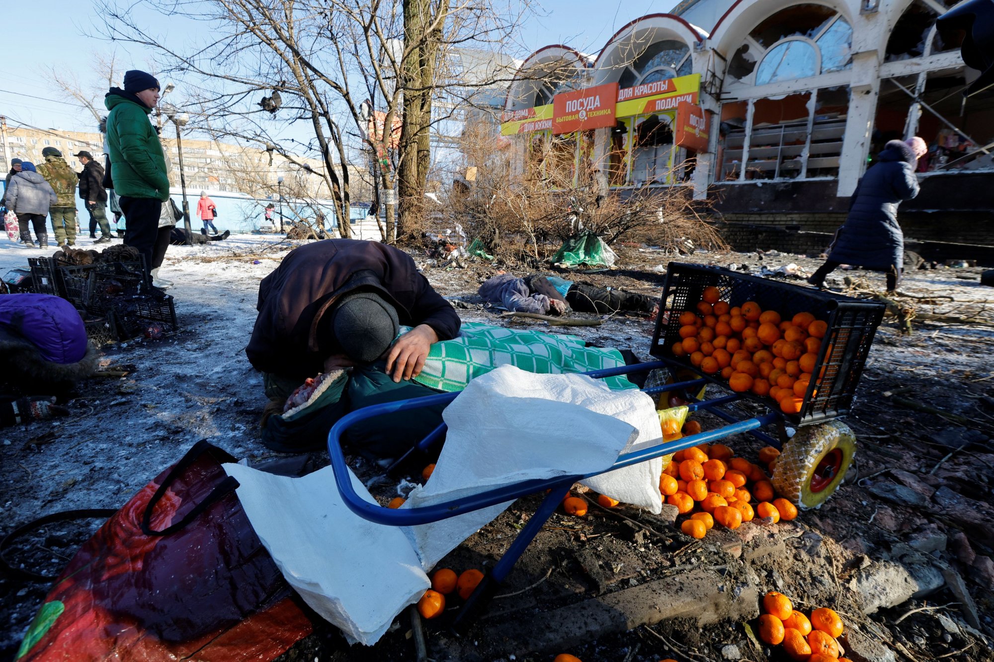 Σύμφωνα με τον Αλεξέι Κουλέμζιν, τον δήμαρχο που διόρισε η Μόσχα στην πόλη του Ντονέτσκ, οι ουκρανικές δυνάμεις βομβάρδισαν μια πολυσύχναστη συνοικία όπου βρίσκονται καταστήματα και μια αγορά.