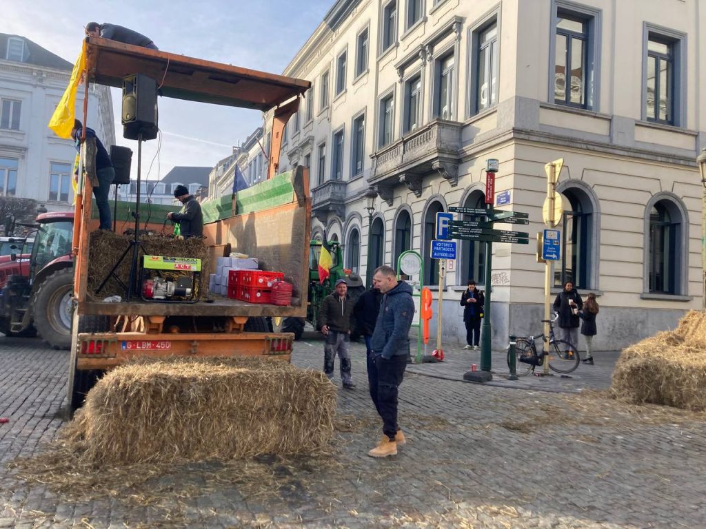 Στιγμιότυπο από τις αγροτικές κινητοποιήσεις – Πλατεία Λουξεμβούργου, απέναντι από το Ευρωπαικό Κοινοβούλιο