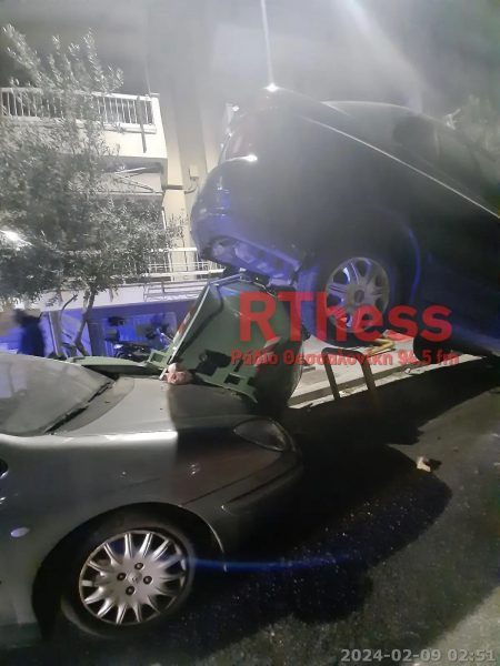Από τη σφοδρότητα της πρόσκρουσης, ένα από τα σταθμευμένα αυτοκίνητα σηκώθηκε από το έδαφος και «σκαρφάλωσε» στο πάνω μέρος ενός κάδου απορριμμάτων. Μέχρι στιγμής δεν έχει αναφερθεί κάποιος τραυματισμός.