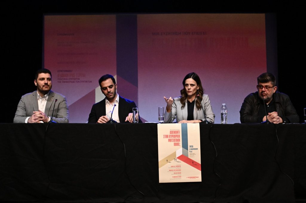Εκδήλωση της Εφημερίδας των Συντακτών «Απέναντι στην κυριαρχία Μητσοτάκη ποιος;» με την συμμετοχή των Διονύση Τεμπονέρα, Μανώλη Χριστοδουλάκη και Έφης Αχτσιόγλου, Τρίτη 13 Φεβρουαρίου 2024