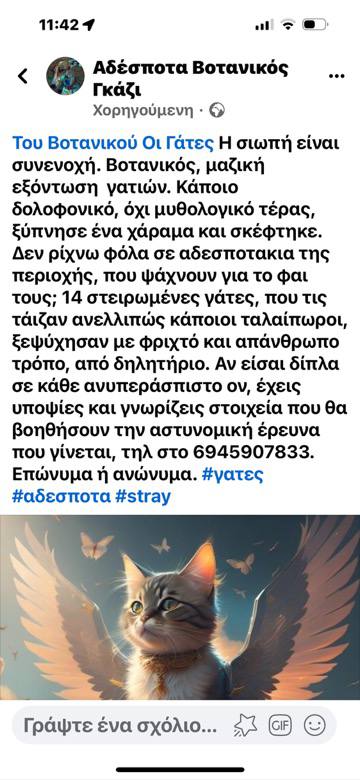 Η σιωπή είναι συνενοχή τονίζουν σωστά στην ανάρτησή τους τα «Αδέσποτα Βοτανικός Γκάζι» και ζητούν βοήθεια και οποιαδήποτε πληροφορία μπορεί να φανεί χρήσιμη στην αστυνομική έρευνα που ξεκίνησε για τα 14 γατάκια.