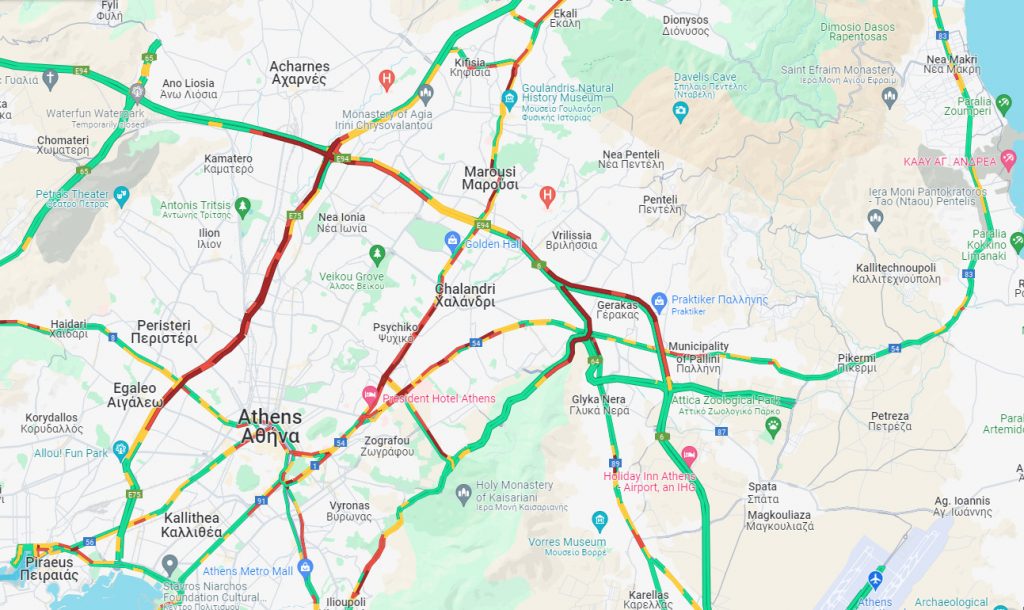 - 20΄-25΄από Μεταμόρφωση (είσοδος από Λαμία) έως Κηφισίας.
