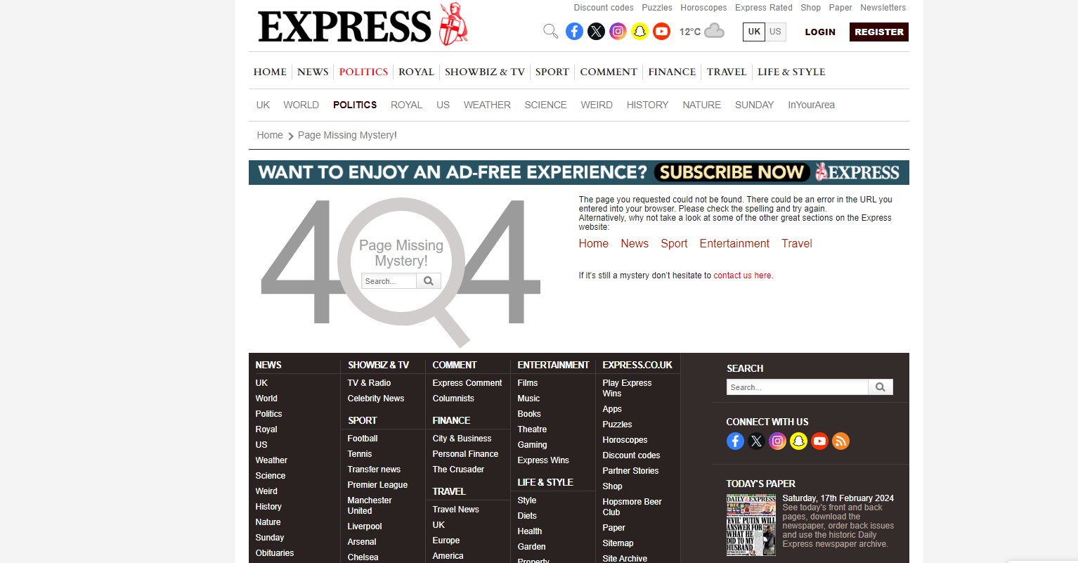 Το δημοσίευμα της Daily Express που πλέον έχει κατέβει
