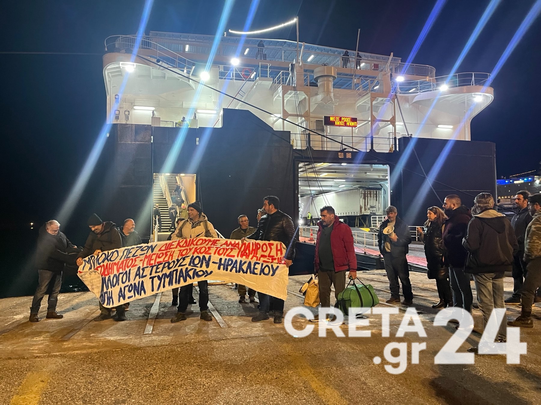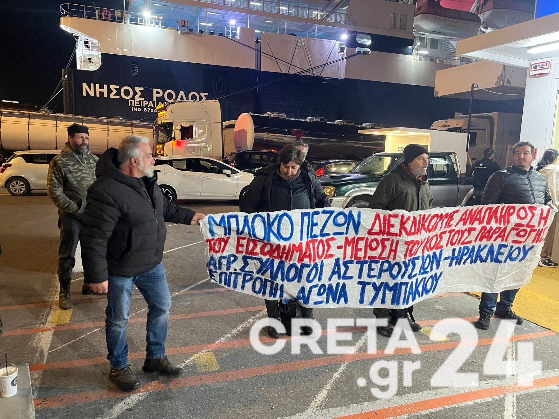 Σημειώνεται ότι πριν την επιβίβαση στα πλοία πραγματοποιήθηκε συγκέντρωση διαμαρτυρίας. Η κινητοποίηση διοργανώθηκε από τους Αγροτικούς Συλλόγους Αστερουσίων και Ηρακλείου και από την Επιτροπή Αγώνα Τυμπακίου.