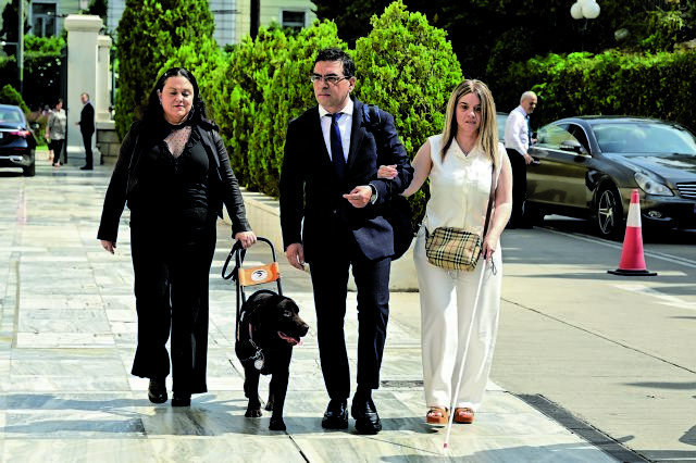 Στις αρχές του περασμένου Ιουλίου, μάλιστα, στην ορκωμοσία της νέας Βουλής, θέλοντας να στείλει ένα συμβολικό μήνυμα, προσκάλεσε να τον συνοδεύσουν η ψυχολόγος και πρόεδρος της Σχολής Σκύλων Οδηγών Τυφλών «Λάρα», Ιωάννα Μαρία Γκέρτσου, μαζί με τον Μπάμπου, τον σκύλο οδηγό της, καθώς και η δικηγόρος Αγκαθα Καρρά. Δύο γυναίκες που αντιμετωπίζουν προβλήματα όρασης αλλά έχουν δώσει μεγάλες μάχες για την προσβασιμότητα των ανθρώπων με αναπηρία σε όλους τους χώρους.