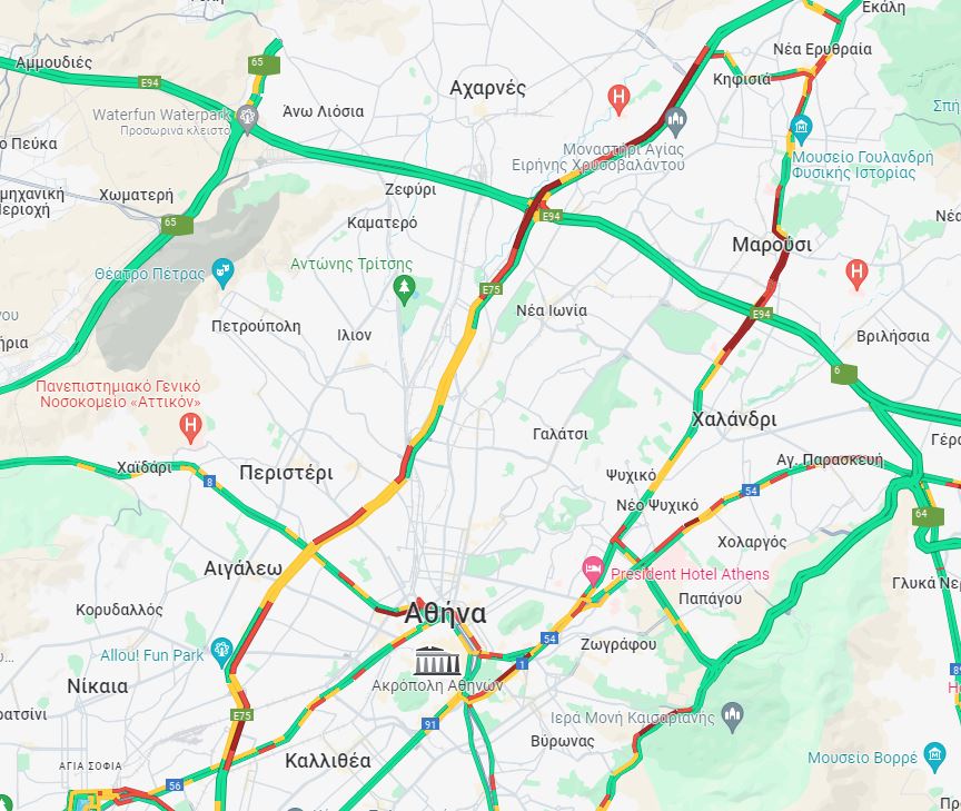 Και στα δύο σημεία λόγω των τροχαίων προκλήθηκαν κυκλοφοριακά προβλήματα όπως φαίνεται και στον χάρτη με το κόκκινο χρώμα.