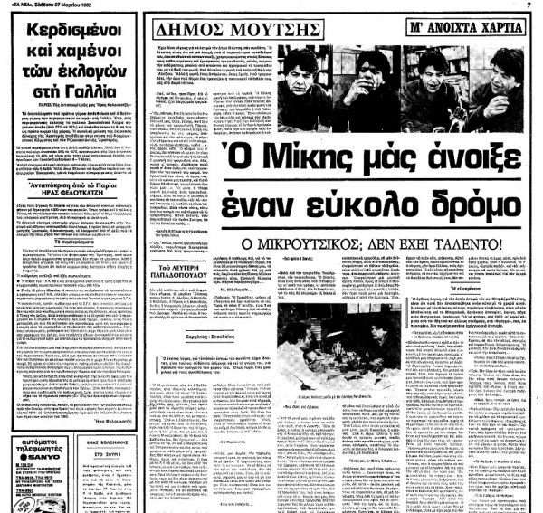«ΤΑ ΝΕΑ», 27.3.1982, Ιστορικό Αρχείο «ΤΟ ΒΗΜΑ» & «ΤΑ ΝΕΑ»