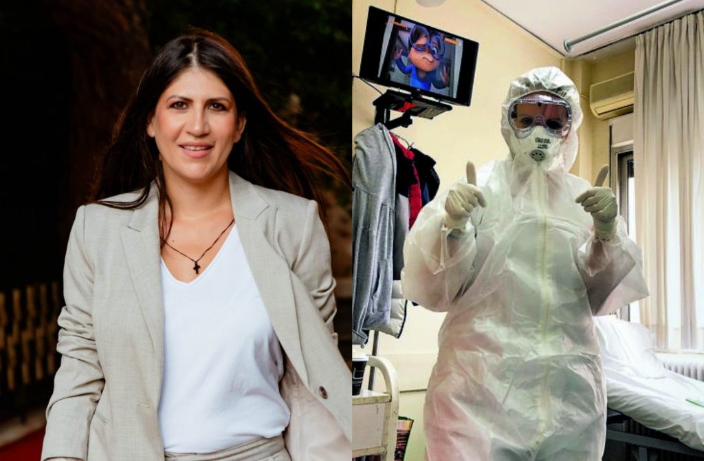 Και έπειτα στέκεται σε γεγονότα που θα τη συνοδεύουν σε όλη της τη ζωή, όπως η ανάμνηση του γιατρού όταν εισήλθε στο δωμάτιο αρνητικής πίεσης του ΑΧΕΠΑ όπου νοσηλευόταν, για να της ανακοινώσει πως είναι το πρώτο κρούσμα.