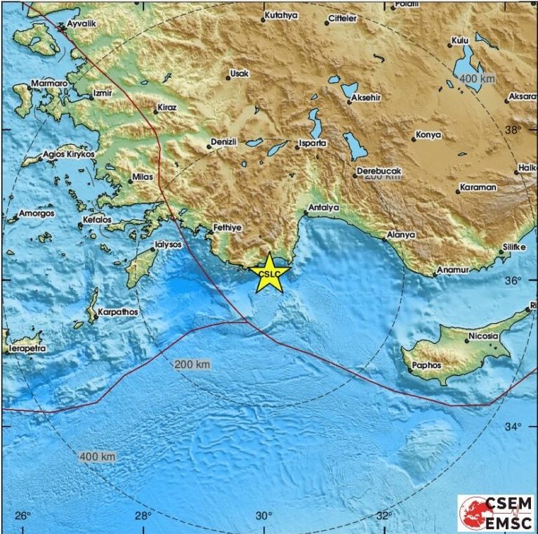 Σύμφωνα με το Ευρωμεσογειακό Σεισμολογικό Κέντρο, το επίκεντρο του σημερινού σεισμού, που έγινε ιδιαίτερα αισθητός, εντοπίζεται 110 χιλιόμετρα νοτιοδυτικά της Αττάλειας και 20 χιλιόμετρα νοτιοδυτικά της πόλης Ντεμρέ.