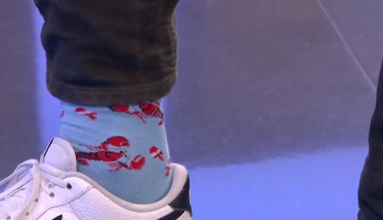 «Στόχος μου είναι όλη η Ελλάδα να τρώει αστακούς όποτε θέλει», είπε ο Στέφανος δείχνοντας τις κάλτσες που απεικόνιζαν αστακούς.
