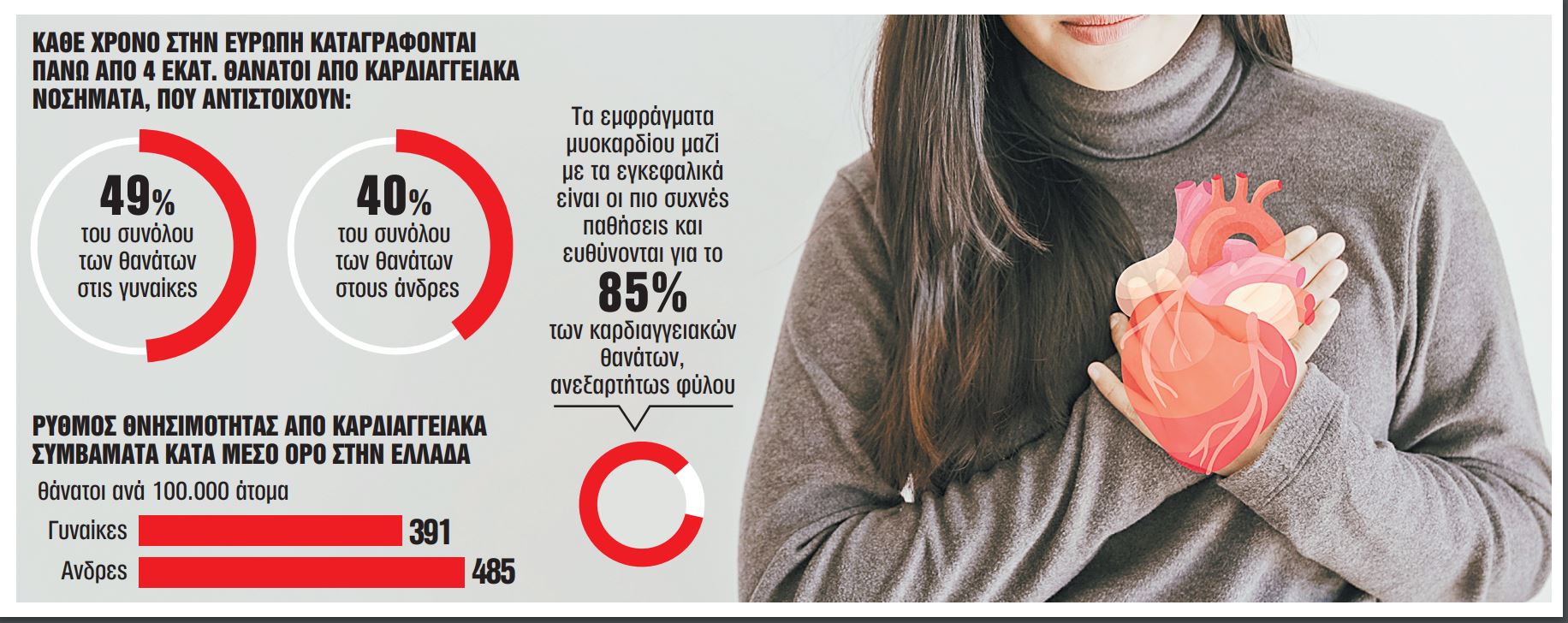 Η αντίληψη ότι οι γυναίκες αποτελούν έναν πληθυσμό χαμηλού καρδιαγγειακού κινδύνου έχει αναθεωρηθεί, καθώς η καρδιαγγειακή νόσος στις γυναίκες έχει υψηλότερη θνητότητα απ’ ό,τι στους άνδρες, ενώ περίπου το 50% των γυναικών στην αναπαραγωγική ηλικία έχουν ήδη κακή καρδιαγγειακή υγεία.