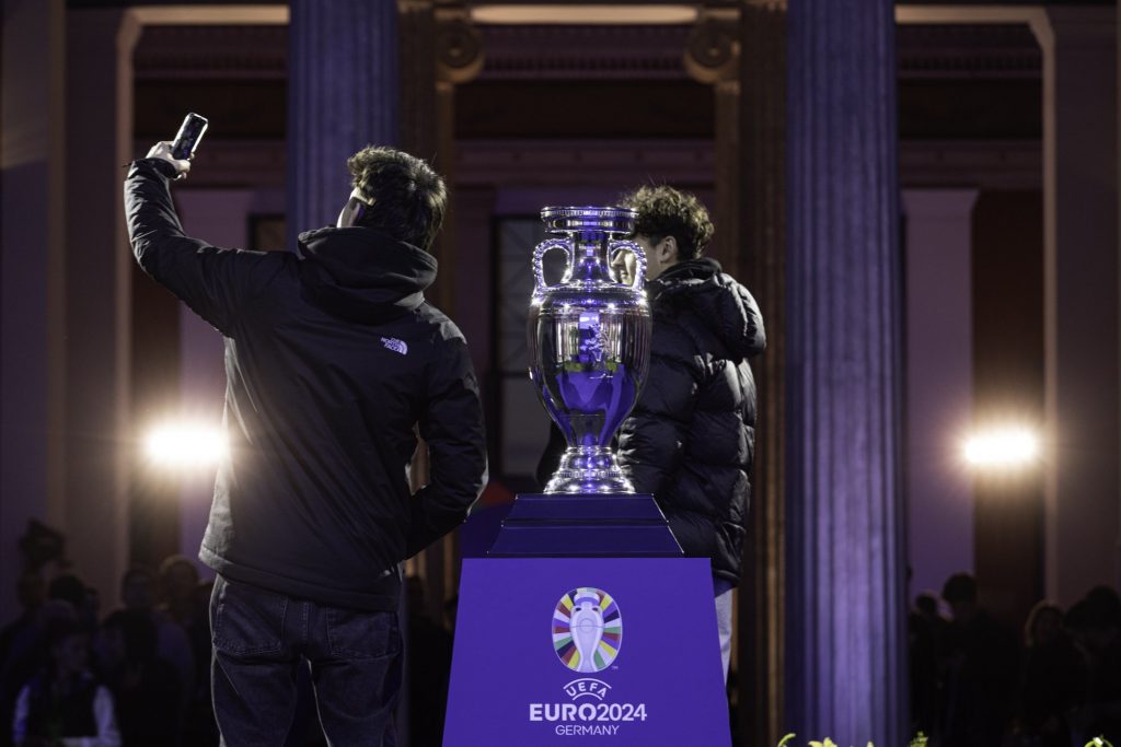 Στην Αθήνα βρέθηκε για μια ημέρα το τρόπαιο του UEFA EURO 2024™ που θα σηκώσει στο Βερολίνο στις 14 Ιουλίου η νέα πρωταθλήτρια Ευρώπης. Περισσότεροι από 2.000 Έλληνες και ξένοι φίλαθλοι πέρασαν από το Ζάππειο Μέγαρο, την περασμένη Πέμπτη 21 Μαρτίου, σε μία μοναδική εκδήλωση που διοργάνωσε η Stoiximan, επίσημος χορηγός του UEFA EURO 2024™.