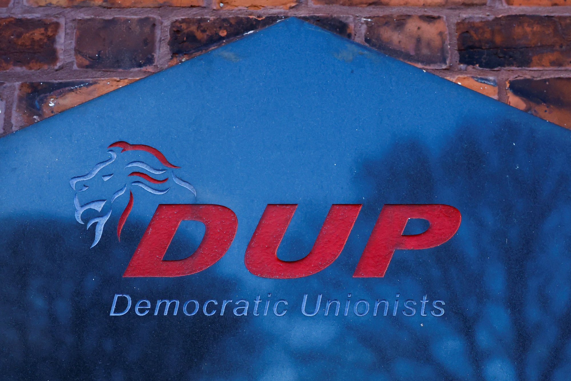 Το σήμα του DUP στο γραφείο του Τζέφρι Ντόναλντσον στην εκλογική περιφέρεια Lagan Valley του DUP, (Πηγή: REUTERS/Clodagh Kilcoyne)