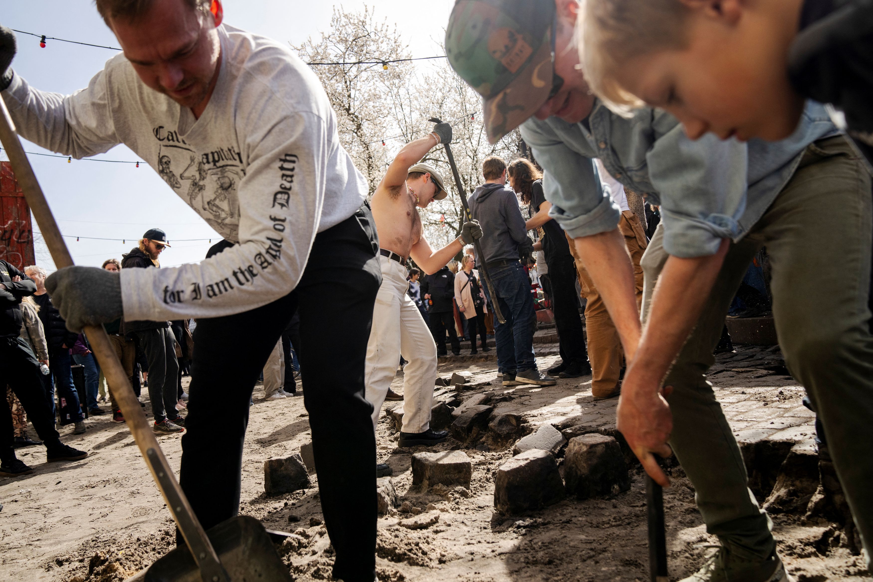 Κάτοικοι της Christiania σκάβουν τα σοκάκια στην οδό Pusher, στην Κοπεγχάγη (Πηγή: Ritzau Scanpix/Ida Marie Odgaard μέσω REUTERS)