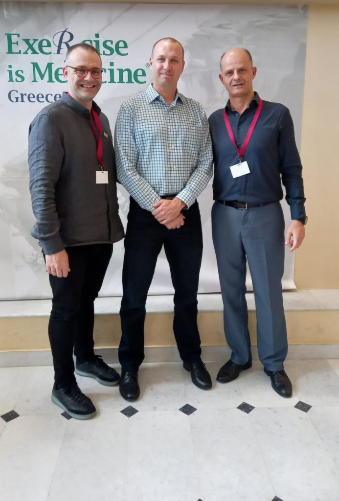 από δεξιά: Αναστάσιος Φιλίππου, Αν.Καθηγήτης της Ιατρικής Σχολής του ΕΚΠΑ, Πρόεδρος Exercise is Medicine Greece, Mark Stoutenberg, Program Officer of Exercise is Medicine ACSM, Professor and Head of Deparment of Sport and Exercise Sciences, Durham University, UK, Ιωάννης Πέννας, General Manager of Exercise is Medicine Greece & Cyprus