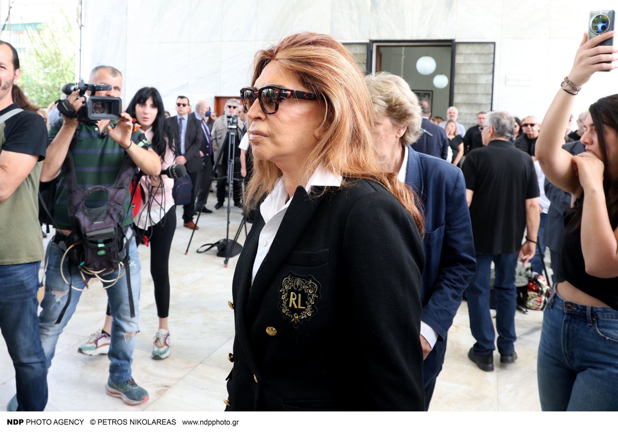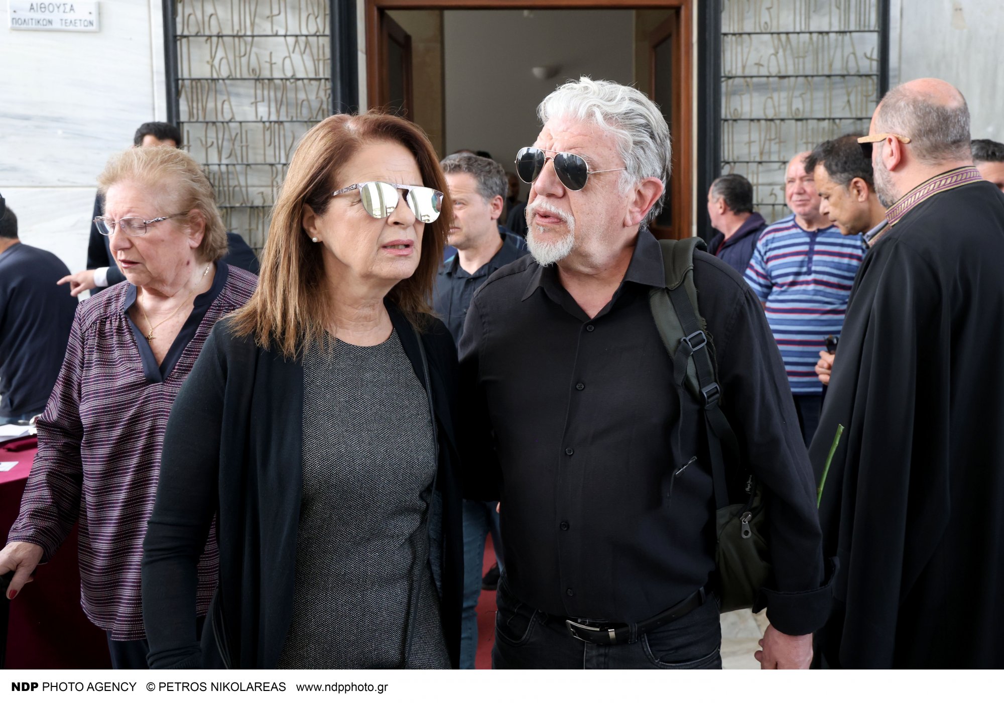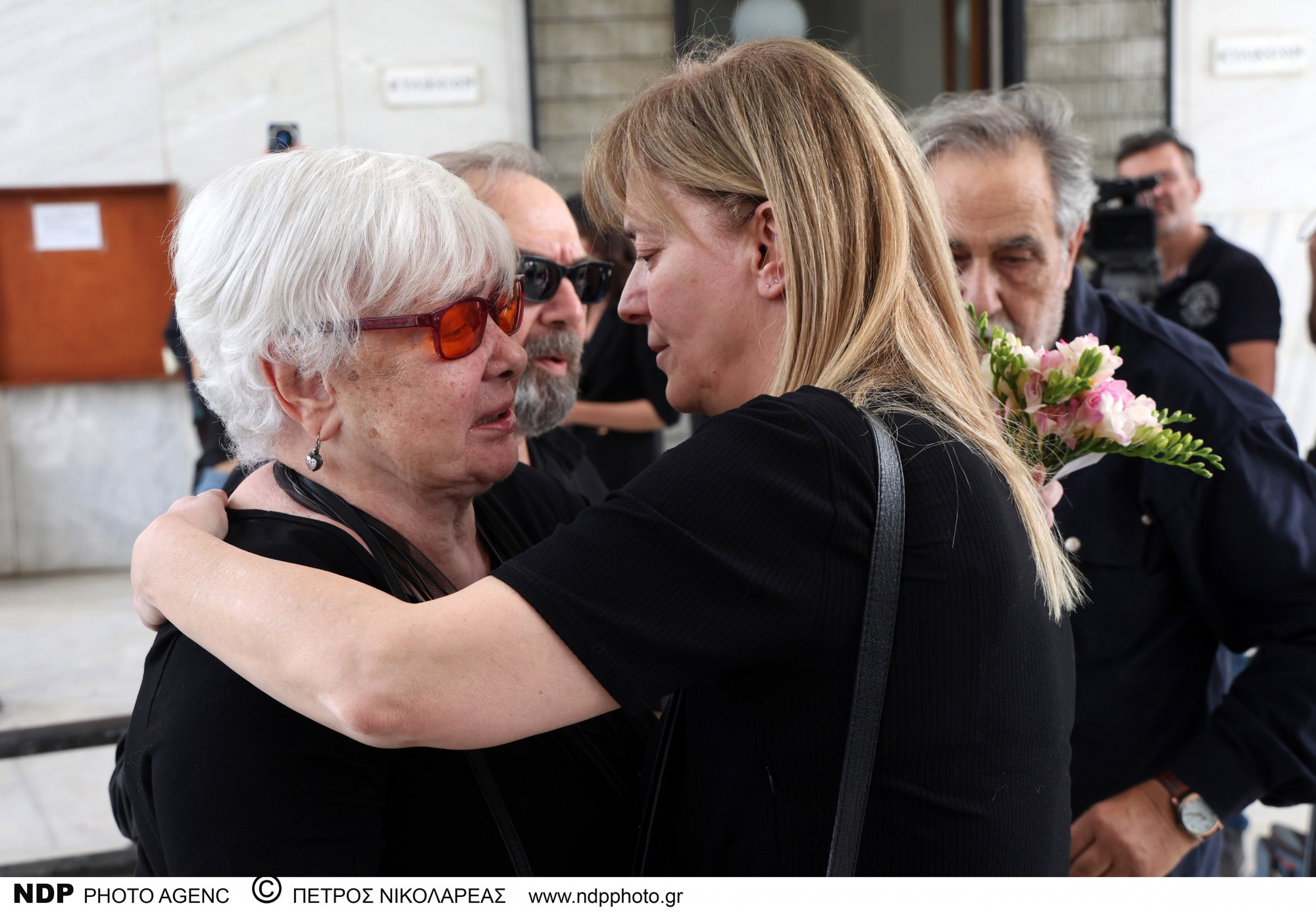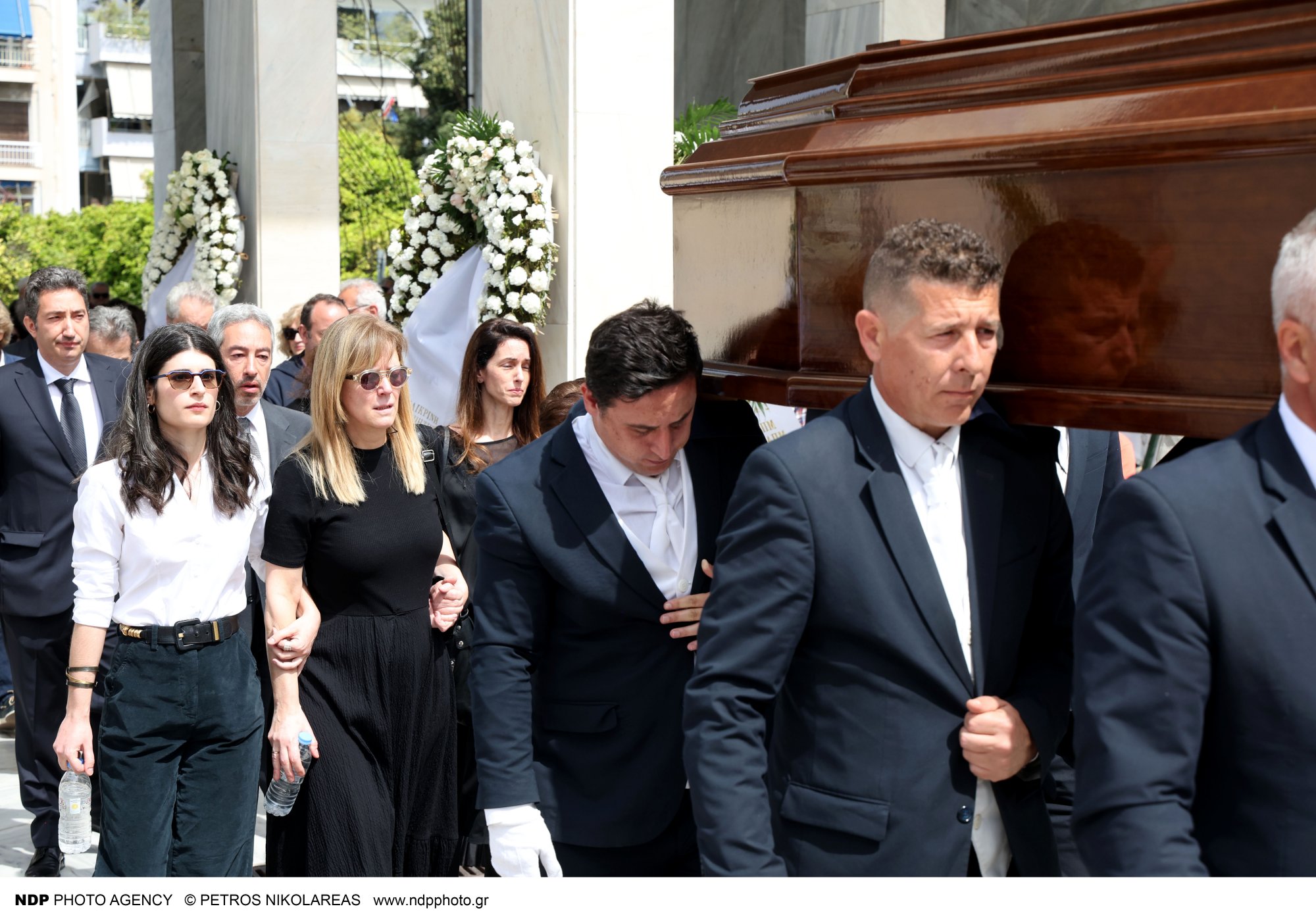 Ανάμεσά τους, και η τελευταία σύζυγος του Γιάννη Φέρτη, Μαρίνα Ψάλτη, η οποία συγκρατούσε με δυσκολία τα δάκρυά της.
