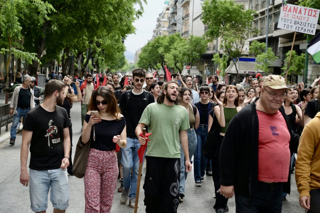 Επιπλέον οι διαδηλωτές ζητούν να σταματήσει άμεσα η αιματοχυσία του λαού της Παλαιστίνης και να μη συμμετέχει η Ελλάδα σε καμία επιχείρηση του ΝΑΤΟ και των ΗΠΑ.