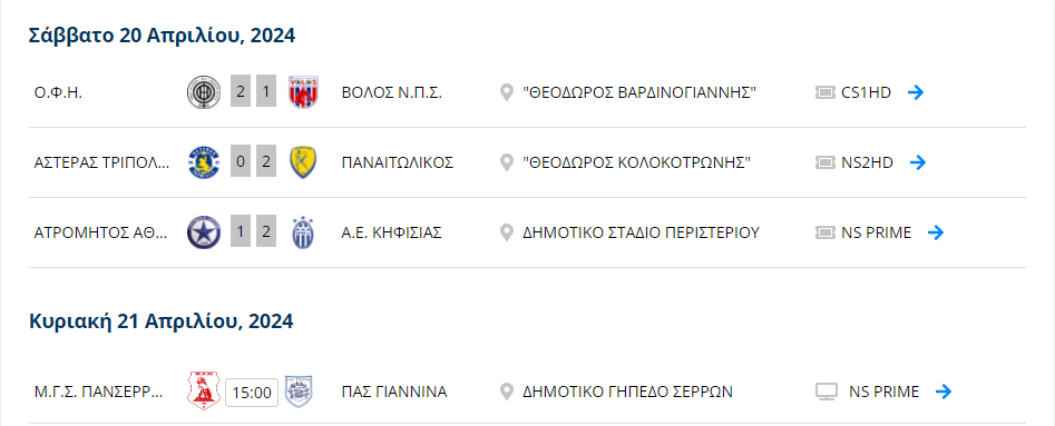 20:00: Αστέρας Τρίπολης – ΟΦΗ