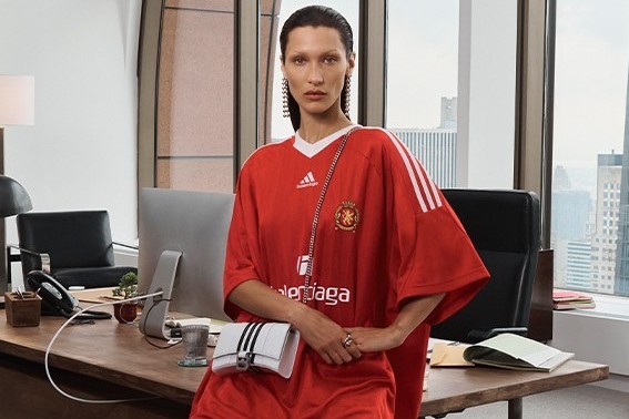 Στη συνέχεια, η Balenciaga προσέλαβε την Bella Hadid για να γίνει μοντέλο της συνεργασίας της με την Adidas, η οποία φόρεσε ρούχα που έμοιαζαν με την εμβληματική φανέλα της Man Utd του 1998.