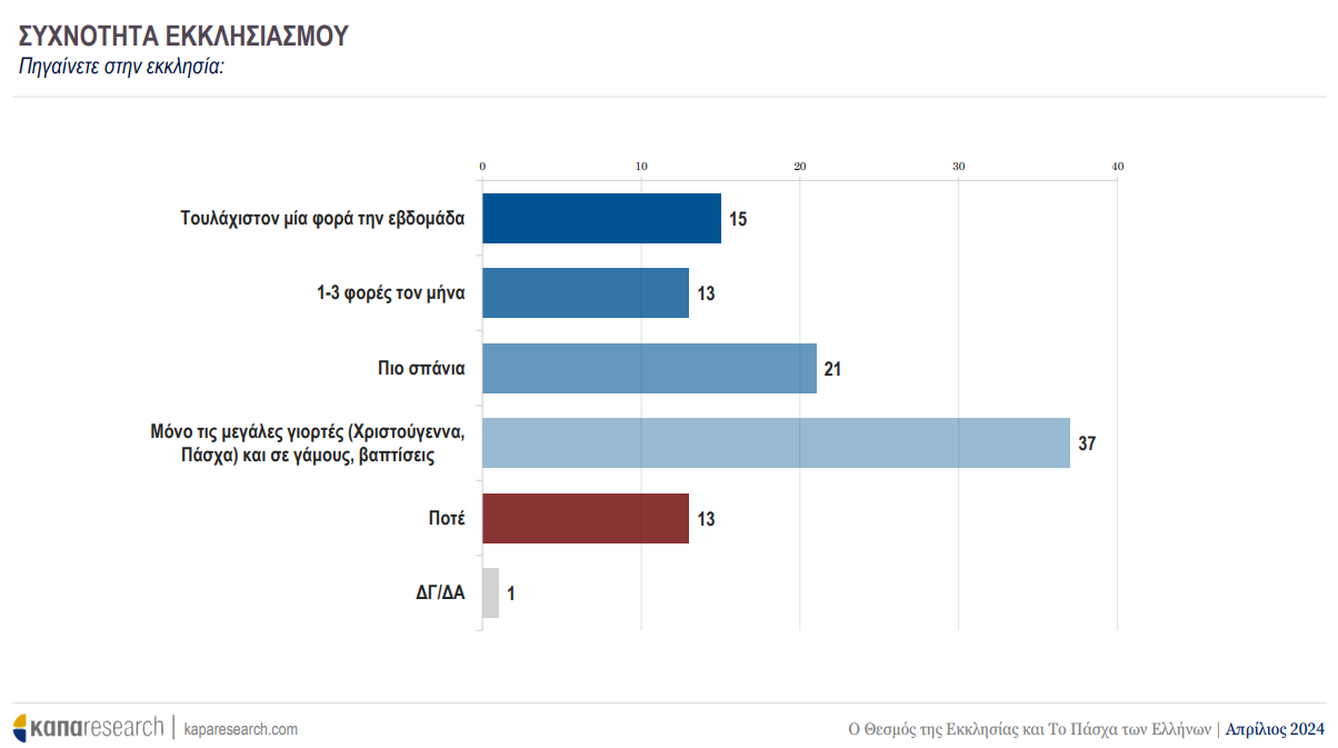 αβεβαιότητες, απομακρύνεται και από τη συχνότητα του εκκλησιασμού· ωστόσο, διατηρείται ένας «πυρήνας» της τάξης του 28% που επισκέπτεται την Εκκλησία