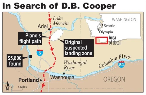 Με αυτόν τον τρόπο ο Κούπερ εξαφανίστηκε, πέφτοντας με αλεξίπτωτο στον νυχτερινό ουρανό και με τα λύτρα δεμένα στη μέση του. Σχεδόν όλα τα ίχνη του Cooper εξαφανίστηκαν εκεί.