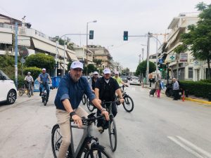 Για μία ώρα, την Πέμπτη 9 Mαΐου, ο Δήμαρχος Αγ. Δημητρίου Στέλιος Μαμαλάκης, αντιδήμαρχοι και δημοτικοί σύμβουλοι περιηγήθηκαν στους δρόμους της πόλης τους με ηλεκτρικά ποδήλατα και διαπίστωσαν στην πράξη τα σημαντικά οφέλη της μετακίνησης με πετάλι!