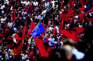 Με τον αλβανικό εθνικό ύμνο ξεκίνησε χθες στο Γαλάτσι το «ζέσταμα» του κοινού για να συνεχίσει ακολούθως με τον ύμνο της ΕΕ, την ώρα που στην αίθουσα ανέμιζαν πλάι-πλάι οι σημαίες Αλβανίας και Ευρώπης. «Η αλβανική σημαία θα σηκωθεί μαζί με τις υπόλοιπες σημαίες της Ευρωπαϊκής Ενωσης» είπε λίγο αργότερα ο Εντι Ράμα προσθέτοντας: «Μαζί με τους Ελληνες, εσείς οι Αλβανοί είστε οι Ευρωπαίοι της Ελλάδας». Νωρίτερα, ο γενικός γραμματέας του αλβανικού Σοσιαλιστικού Κόμματος είχε μιλήσει για την πρόθεση υιοθέτησης του ελληνικού μοντέλου επιστολικής ψήφου.