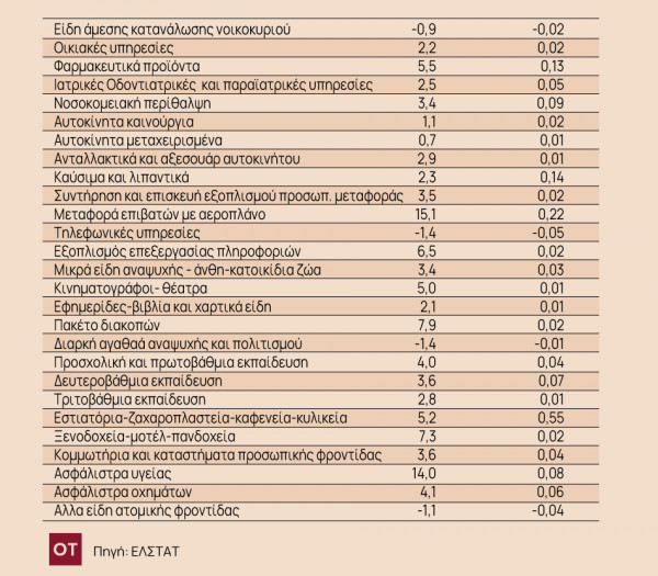 Αντίστοιχα, η μηνιαία αύξηση 0,5% προήλθε από: