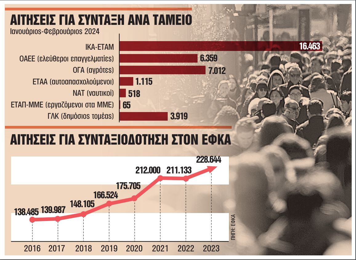 IKA, ΔΕΚΟ, τράπεζες με 5.500 ένσημα και ανήλικο τέκνο: Οι μητέρες και οι χήροι πατέρες ανήλικων τέκνων του ΙΚΑ, των Ταμείων των ΔΕΚΟ – τραπεζών που είχαν κατοχυρωμένο δικαίωμα συνταξιοδότησης έχοντας συμπληρώσει 5.500 ημέρες ασφάλισης και ταυτόχρονα ανηλικότητα μπορούν να συνταξιοδοτηθούν και μετά την 1/1/2024 ανάλογα με το όριο ηλικίας όπως αυτό ρυθμίστηκε με βάση τον Ν. 4336/2015. Στις κατηγορίες αυτές ανήκουν: