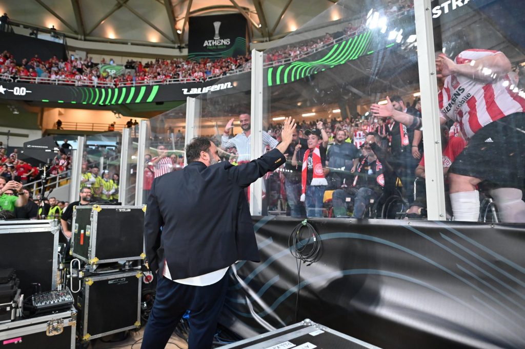 O ισχυρός άνδρας της ομάδας του λιμανιού κατέβηκε στον αγωνιστικό χώρο και πήγε στους οπαδούς των «ερυθρόλευκων» γνωρίζοντας την αποθέωση.