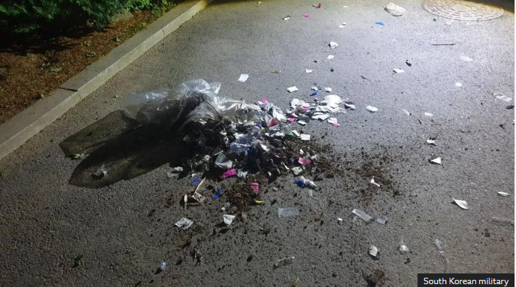 Ο στρατός της Νότιας Κορέας προειδοποίησε επίσης τους πολίτες, να μην αγγίζουν τα λευκά μπαλόνια και τις πλαστικές σακούλες που είναι προσαρτημένες σε αυτά επειδή περιέχουν «βρώμικα απόβλητα και σκουπίδια».