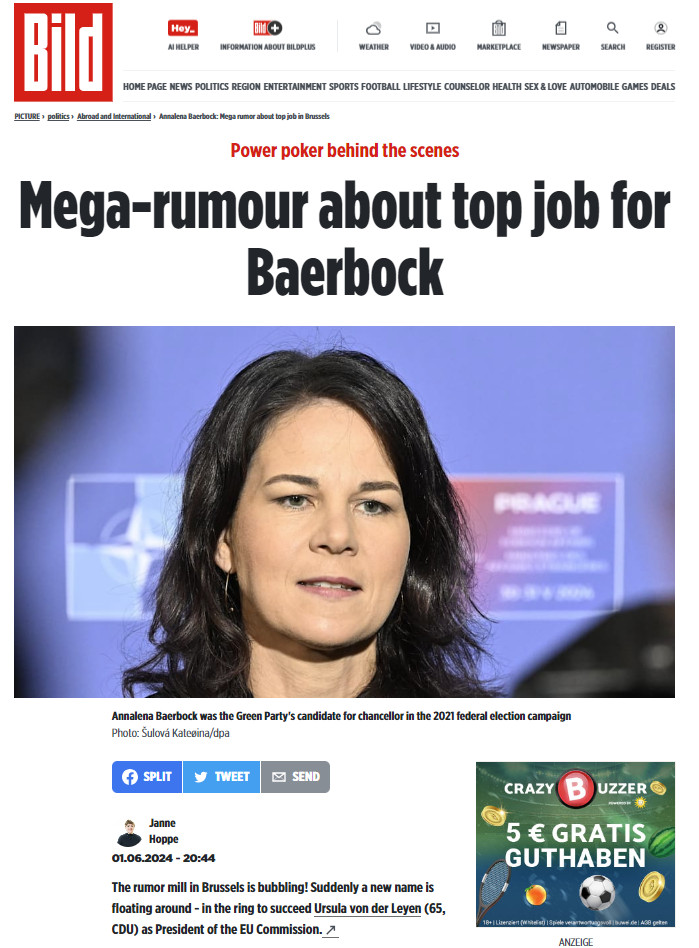 Αυτό είναι το δημοσίευμα της εφημερίδας Bild που κάνει λόγο για «κορυφαία θέση» για την Γερμανίδα υπουργό Εξωτερικών, Αναλένα Μπέρμποκ