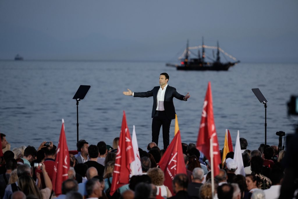 Το σκηνικό στον Λευκό Πύργο ήταν λιγότερο συγχωρητικό για τον ΣΥΡΙΖΑ, με τον Κασσελάκη να συγκεντρώνει τα φώτα λόγω της αποκάλυψης του πόθεν έσχες: «Οι εκλογές της Κυριακής είναι η τελευταία ευκαιρία για αξιοπρέπεια. Είναι η τελευταία ευκαιρία να συμμαζευτεί η κυβέρνηση της αλαζονείας» επισήμανε για το διακύβευμα των εκλογών, περιγράφοντας το πρόγραμμα του ΣΥΡΙΖΑ για την οικονομία, τη φορολογία και την εξωτερική πολιτική. «Μιλήστε με τους δικούς σας ανθρώπους. Μιλήστε τους για το σχέδιο του ΣΥΡΙΖΑ για μια ισχυρή προοδευτική αντιπολίτευση σήμερα και για μια δημοκρατική κυβερνητική εναλλακτική στις επόμενες εθνικές εκλογές» επισήμανε.
