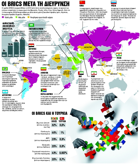 Αυτά, ανάμεσα σε άλλα, έγραφε τον Σεπτέμβριο του 2023 στη «Sabah» ο Αλί Ογκιούζ Ντιριόζ, επιχειρώντας να θέσει ένα πλαίσιο στο συγκεκριμένο θέμα, το οποίο φαινόταν ήδη από τότε να έχει τεθεί στην ατζέντα της γειτονικής χώρας (αν και ως σενάριο υφίσταται από πολύ πιο παλιά). Στους μήνες δε που μεσολάβησαν, ειδικά μετά τη διεύρυνση των BRICS με άλλα πέντε νέα μέλη – Σαουδική Αραβία, Ιράν, Αίγυπτος, ΗΑΕ και Αιθιοπία –, έχουν πληθύνει οι ενδείξεις ότι είναι κάτι που ο Ρετζέπ Ταγίπ Ερντογάν και η υπόλοιπη τουρκική ηγεσία εξετάζουν πλέον πολύ σοβαρά. Εστω κι αν γνωρίζουν πως κάτι τέτοιο θα τους απομακρύνει ακόμα περισσότερο από τη Δύση και τους παραδοσιακούς συμμάχους τους.