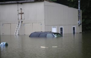 Οι διασώστες προσπαθούν να απομακρύνουν με βάρκες τους ανθρώπους που έχουν πληγεί από την κακοκαιρία
