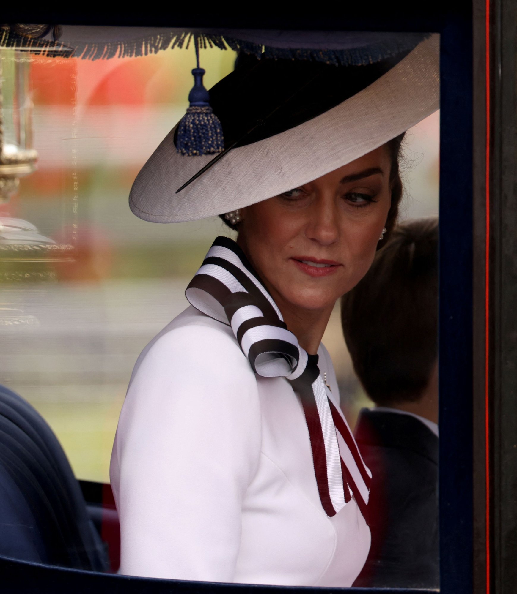 «Έφτασε στο παλάτι όπου θα μπει σε μια άμαξα μαζί με τα τρία παιδιά της»,δήλωσεη βασιλική ανταποκρίτρια Laura Bundock. «Θα κατευθυνθούν κατά μήκος του εμπορικού κέντρου προς το Horse Guards Parade, όπου θα παρακολουθήσουν το Trooping».
