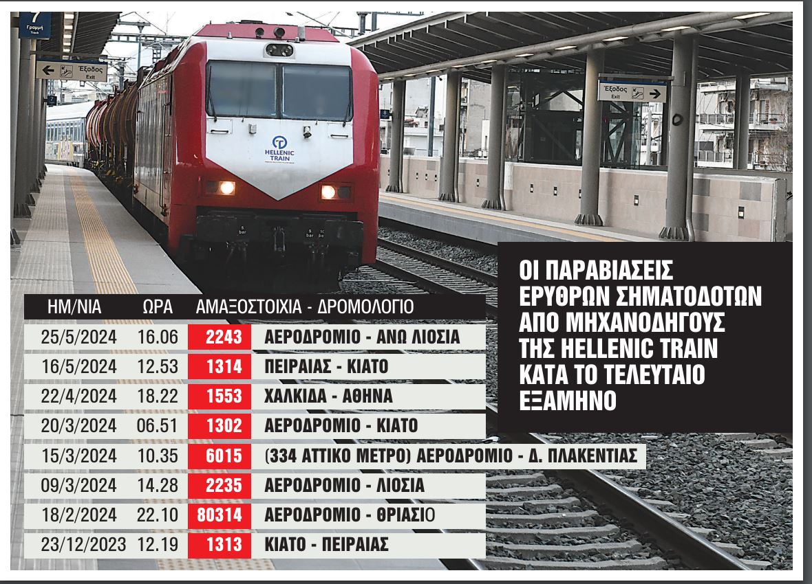 Στις 16 Μαΐου 2024 και ώρα 12.53 ο μηχανοδηγός της αμαξοστοιχίας 1314 που εκτελούσε το δρομολόγιο Πειραιάς – Κιάτο πέρασε με «κόκκινο» στο ύψος του σταθμού του Σιδηροδρομικού Κέντρου Αχαρνών (ΣΚΑ). Το πιο πρόσφατο περιστατικό καταγράφηκε πριν από περίπου είκοσι ημέρες. Συγκεκριμένα, στις 25 Μαΐου 2024 και ώρα 16.06 ο μηχανοδηγός της αμαξοστοιχίας 2243 που εκτελούσε το δρομολόγιο Αεροδρόμιο – Ανω Λιόσια παραβίασε τον ερυθρό σηματοδότη που υπάρχει στην Παλλήνη.