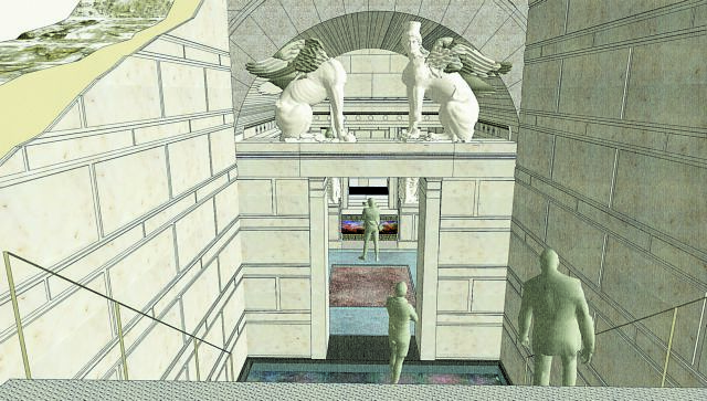«Κατάματα» θα κοιτάζει τους επισκέπτες του ταφικού τύμβου Καστά στην Αμφίπολη η πανέμορφη Σφίγγα, καθώς το μαρμάρινο κεφάλι της πρόκειται να τοποθετηθεί ξανά στη θέση όπου βρισκόταν πριν από 24 αιώνες. Στην αρχική τους θέση θα «φυτρώσουν» και πάλι τα φτερά της – τα οποία βρέθηκαν κομματιασμένα ακόμη και εκτός του εντυπωσιακού περιβόλου του ταφικού μνημείου –, ενώ μισάνοιχτη η βαριά δίφυλλη και υπερμεγέθης θύρα θα επιτρέπει μια ματιά στον τελευταίο θάλαμο του μνημείου, εκεί όπου η ταφική θήκη με τα οστά των νεκρών θα επενδυθεί με μια ιδιαίτερα ενισχυμένη μεταλλική θήκη.