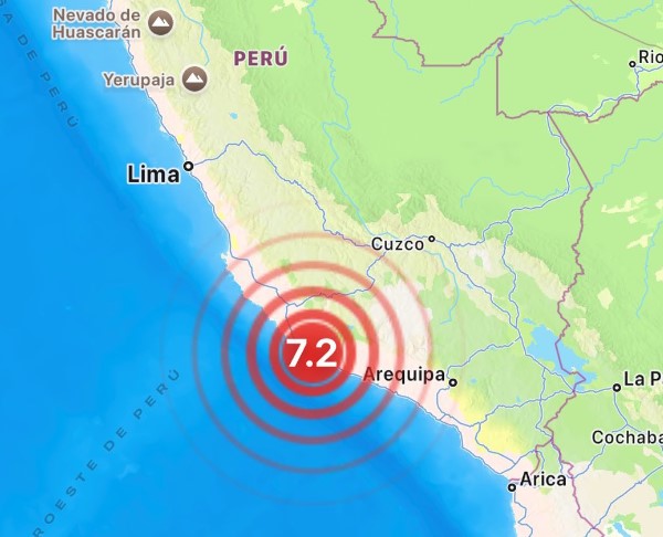 Ισχυρός σεισμός μεγέθους 7.2 βαθμών της κλίμακας Ρίχτερ σημειώθηκε στα ανοικτά των ακτών του νότιου Περού σε βάθος 28 χιλιομέτρων, το πρωί της Παρασκευής (ώρα Ελλάδος) σύμφωνα με το Γεωλογικό Ινστιτούτο των Ηνωμένων Πολιτειών της Αμερικής (USGC).