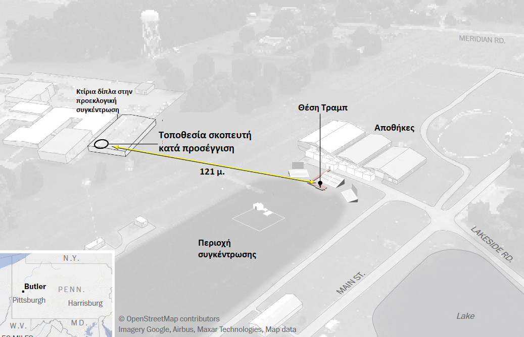 Η ευρύτερη περιοχή της απόπειρας δολοφονίας του Ντόναλντ Τραμπ