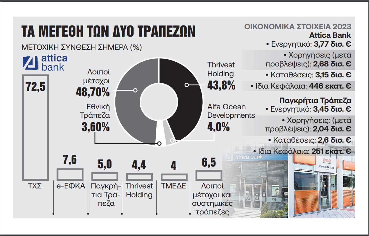 6 ΤΧΣ και Thrivest δεσμεύτηκαν να στηρίξουν την έγκριση της συμφωνίας διά της ψήφου τους στις διαδικασίες που θα ακολουθήσουν στις δύο τράπεζες. Το ΤΧΣ κατέχει σήμερα το 72,5% των μετοχών της Attica Bank, ενώ η Thrivest έχει ποσοστό 43,8% στην Παγκρήτια Τράπεζα και 4,4% στην Attica Bank. Ποσοστό 5% των μετοχών της Attica Bank διατηρεί εξάλλου η ίδια η Παγκρήτια.
