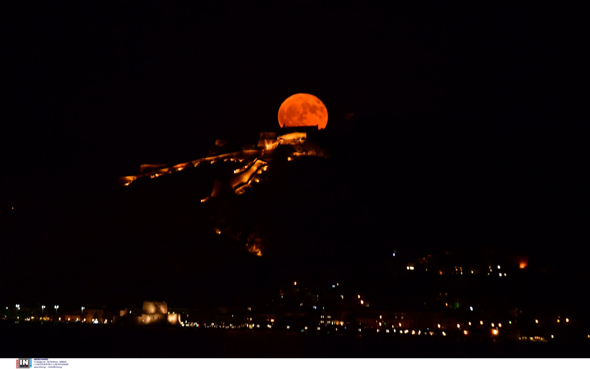 Οι τυχεροί που βρέθηκαν στο Σούνιο, στο ΚΠΙΣΝ και σε άλλα σημεία της πρωτεύουσας και άλλων πόλεων -μεταξύ των οποίων σε Ναύπλιο και Χαλκιδική- έχουν την ευκαιρία να απολαύσουν το εκπληκτικό θέαμα με το ολόγιομο φεγγάρι.