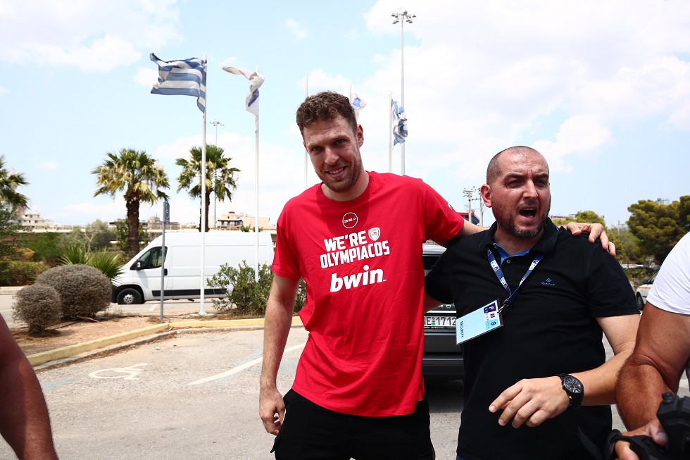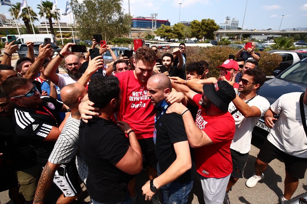 Εκατοντάδες φίλοι των Πειραιωτών έχουν συγκεντρωθεί από νωρίς έξω από την αίθουσα Τύπου του φαληρικού γηπέδου για να αποθεώσουν τον Βούλγαρο φόργουορντ κατά την άφιξή του στο ΣΕΦ.
