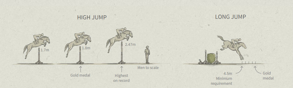 Στο αγώνισμα της ιππασίας είδαμε και το άλμα εις ύψος, αλλά και εις μήκος με άλογο.