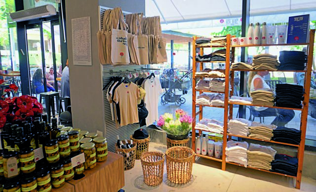 Τα καφέ Otef, αυτό είναι το δεύτερο, είναι ένα pop up project, μια πρωτοβουλία των κατοίκων των κιμπούτς οι οποίοι δεν μπορούσαν να καθίσουν άπραγοι. Mε τη βοήθεια χορηγών άνοιξε το πρώτο, τώρα το δεύτερο, θα έρθουν κι άλλα. Προσφέρουν, μου εξηγεί η Ρεούτ που το διαχειρίζεται, δουλειά στους πρόσφυγες και παράλληλα πουλούν προϊόντα που τους προσφέρουν άλλα κιμπούτς, όπως μέλι, λάδι, κρασί, μπισκότα και πολλά άλλα τα οποία ήταν ούτως ή άλλως γνωστά για την ποιότητά τους στο Ισραήλ.