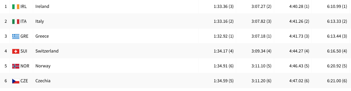 Η κατάταξη στον τελικό του διπλού σκιφ ελαφρών βαρών