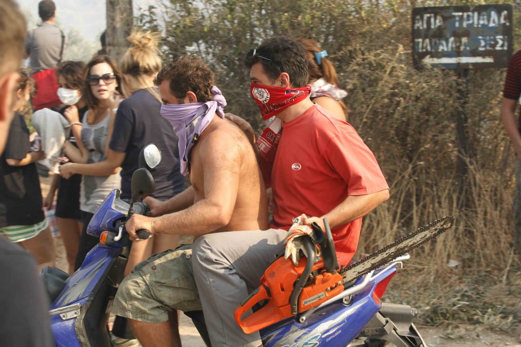 Κάτοικοι δίνουν μάχη με τις φλόγες
