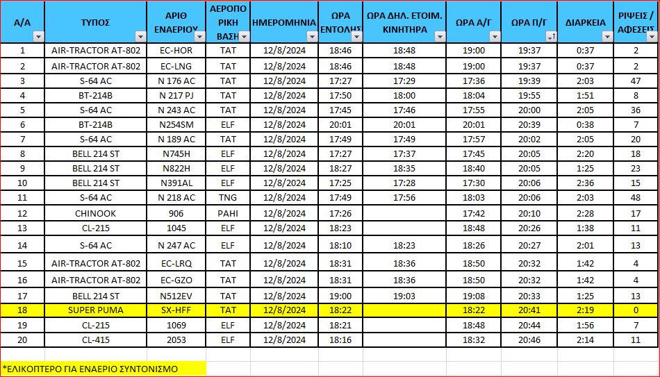 » Στις 12 Αυγούστου: 36 εναέρια μέσα (17 αεροσκάφη και 19 ελικόπτερα)